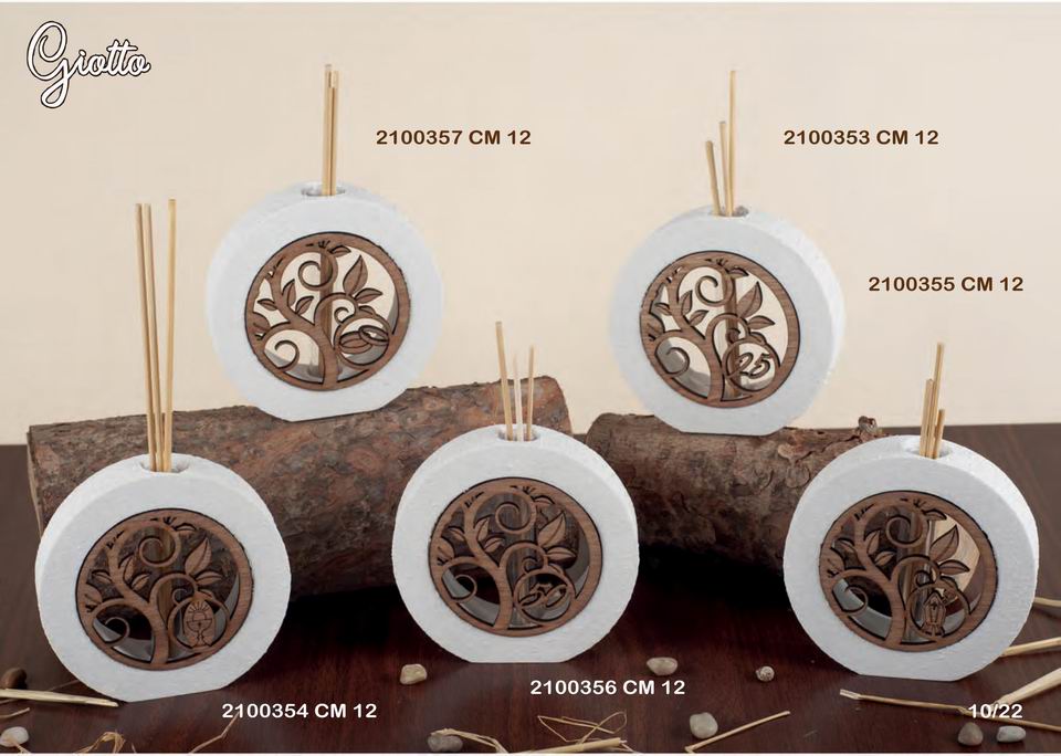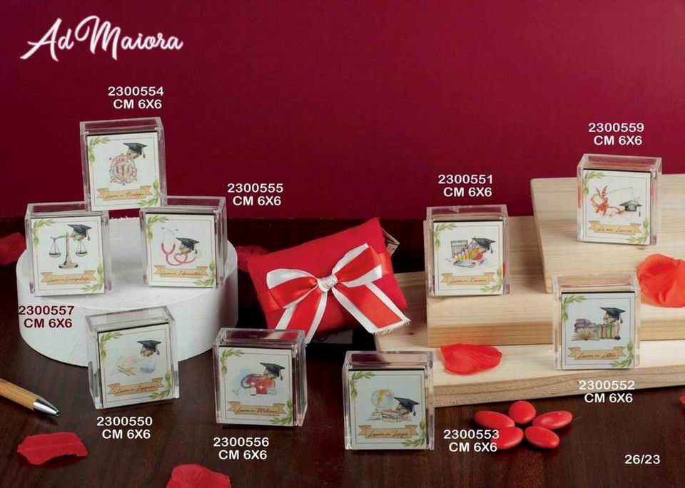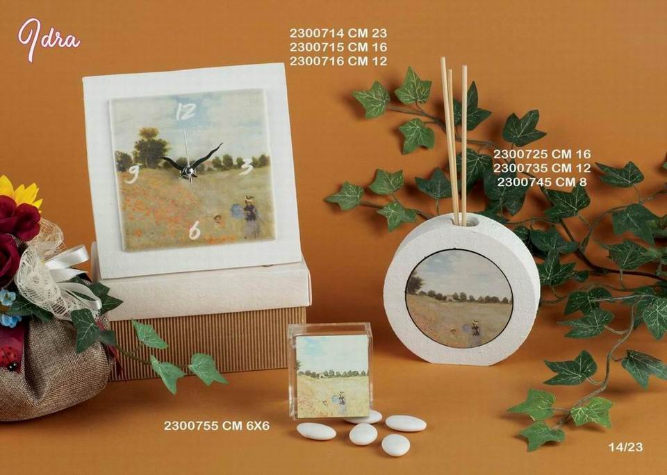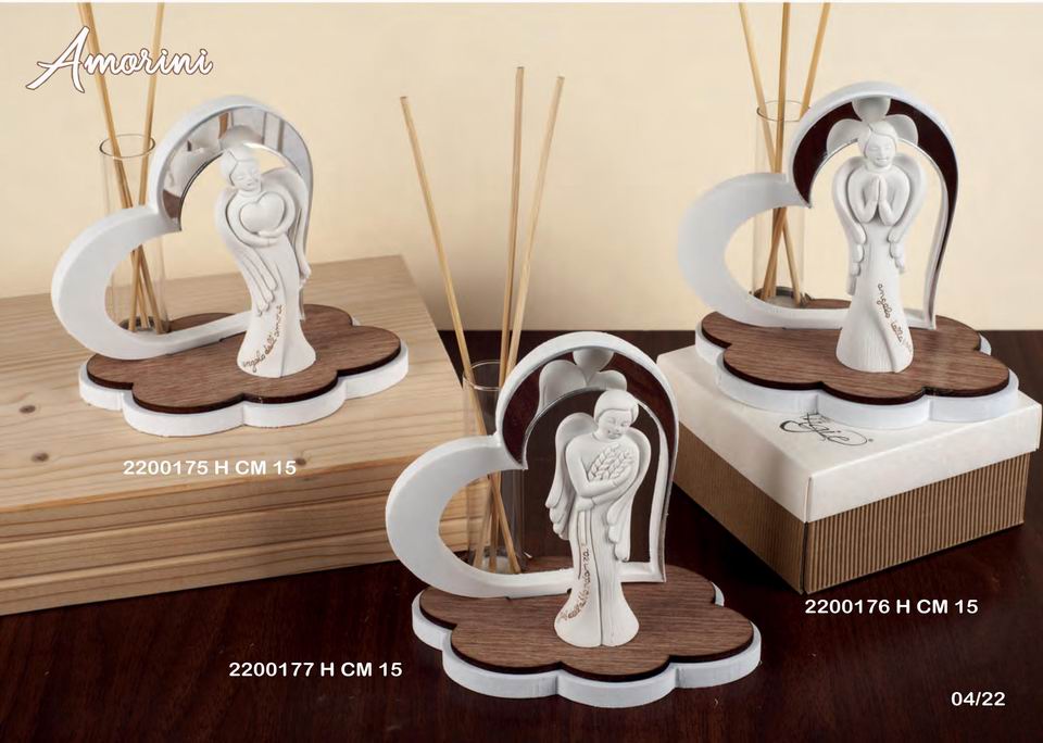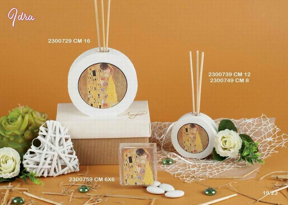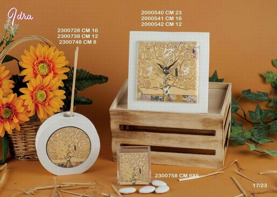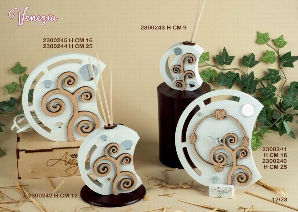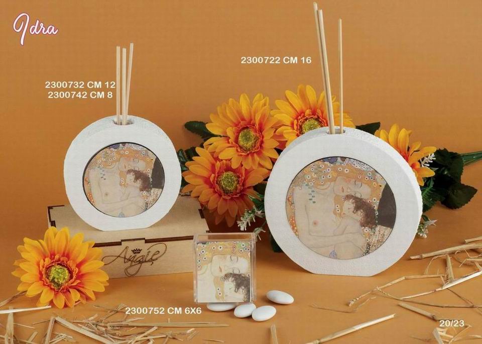 Produce bomboniere e articoli da regalo rigorosamente Made in Italy utilizzando materiali pregiati come polvere di marmo di Carrara e piuma di pietra leccese, decorati a mano completate da inserti in legno incisi al laser, plexiglass etc. Dove previsto, gli articoli sono muniti di accessori quali essenze profumate e midollini.