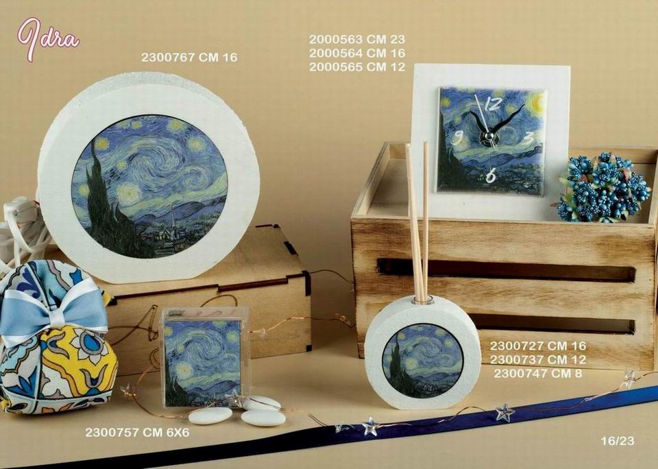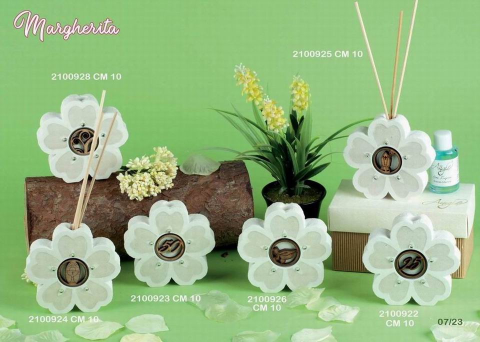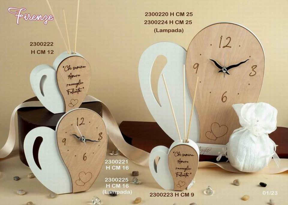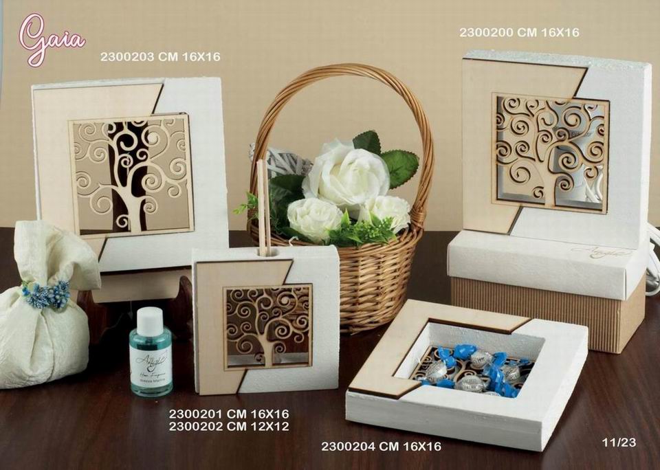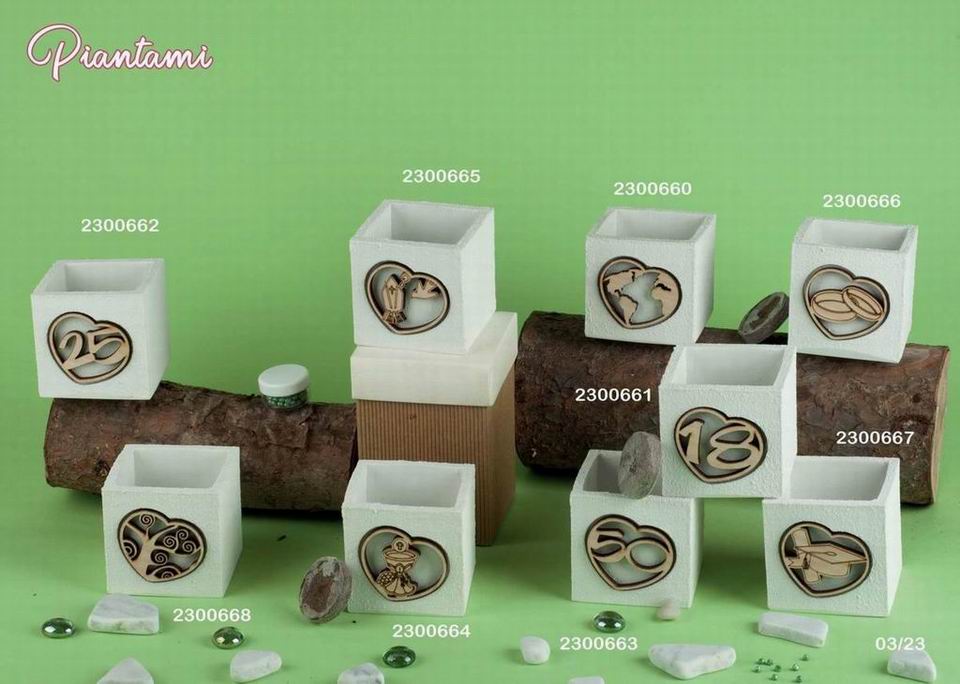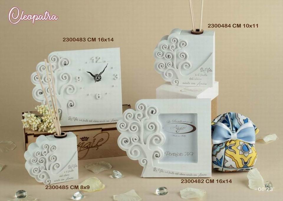 Produce bomboniere e articoli da regalo rigorosamente Made in Italy utilizzando materiali pregiati come polvere di marmo di Carrara e piuma di pietra leccese, decorati a mano completate da inserti in legno incisi al laser, plexiglass etc. Dove previsto, gli articoli sono muniti di accessori quali essenze profumate e midollini.